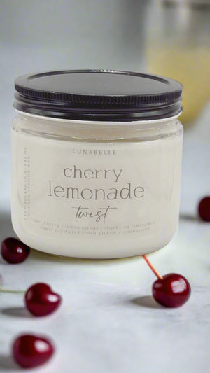 Quench your thirst for something sweet and tangy with the vibrant fragrance of our Cherry Lemonade Twist candle. The top notes of tart cherry and zesty lemon citrus instantly refresh, while the heart of sparkling lemonade adds a lively effervescence. As the scent settles, the base notes of sugary crystals and freshly picked strawberry bring a deliciously sweet finish, like a glass of chilled lemonade on a sunny day. This bright and playful scent is the perfect pick-me-up for any occasion.